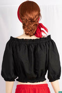 Ladies crop ruffle neck design ruffle half sleeve casual fit black tops