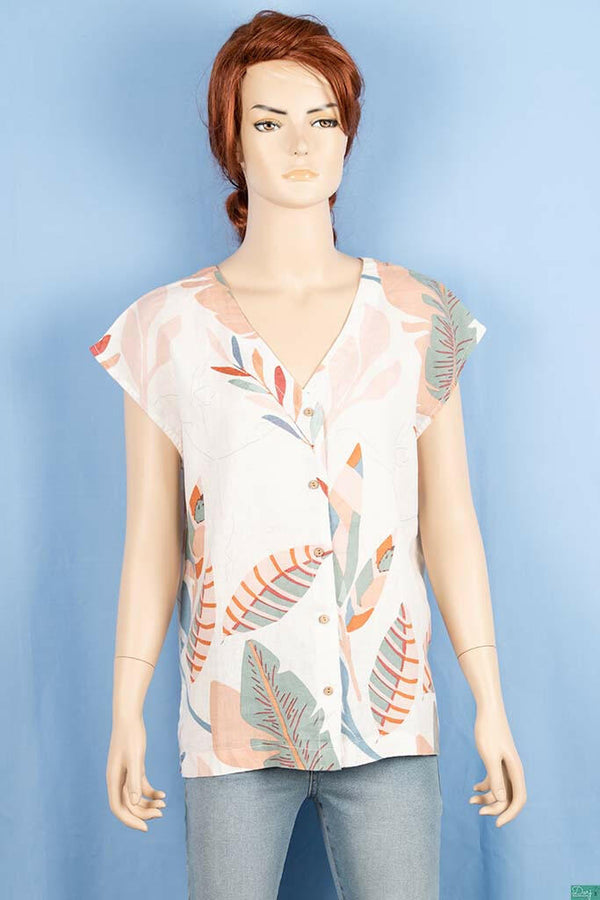 Ladies sleeveless V neck button casual fit blouse tops. A very soft, comfortable summer blouse tops with 100% cotton. Suitable for Summer and Spring.