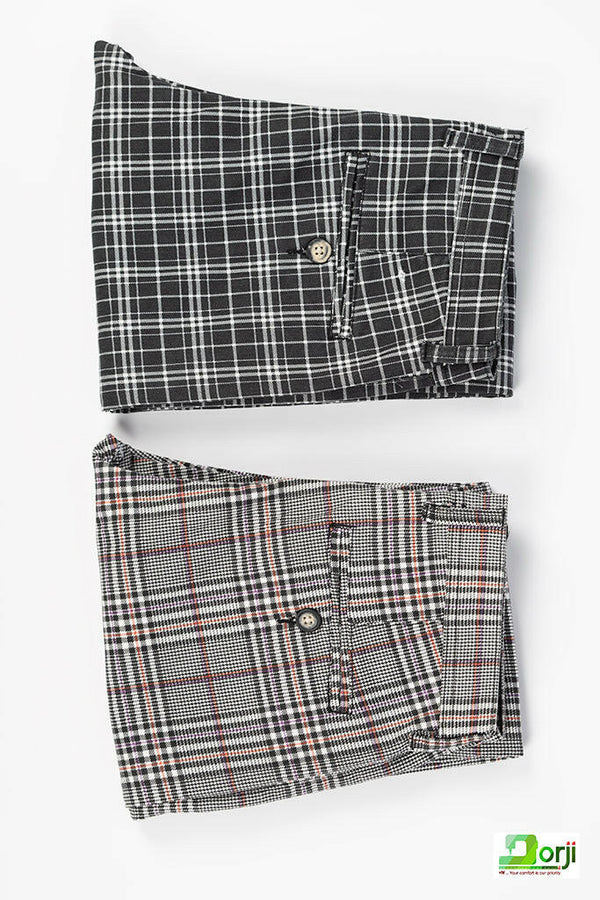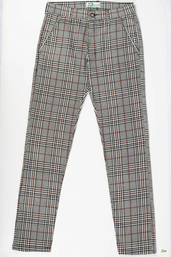 Men's slim fit Pants in black & white check and black, white & orange check. A nice fashionable & comfortable Pants with 100% cotton. Suitable for all weather.