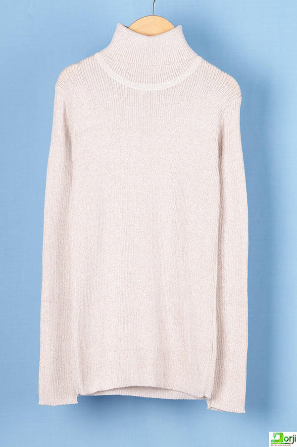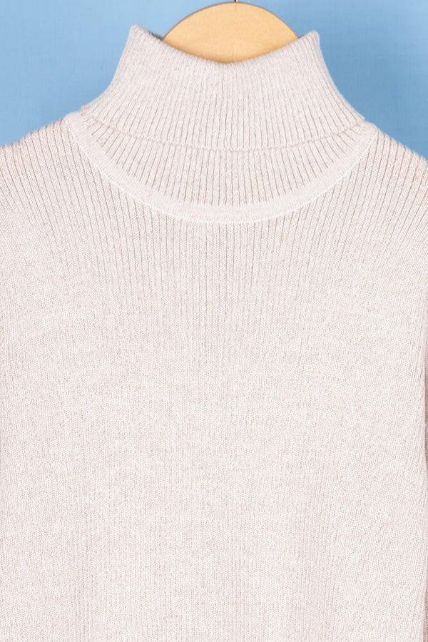 Girl’s full sleeve regular fit high neck sparkle sweater in Off white. A very soft comfortable sweater with 100% cotton. Suitable for Winter and Spring.