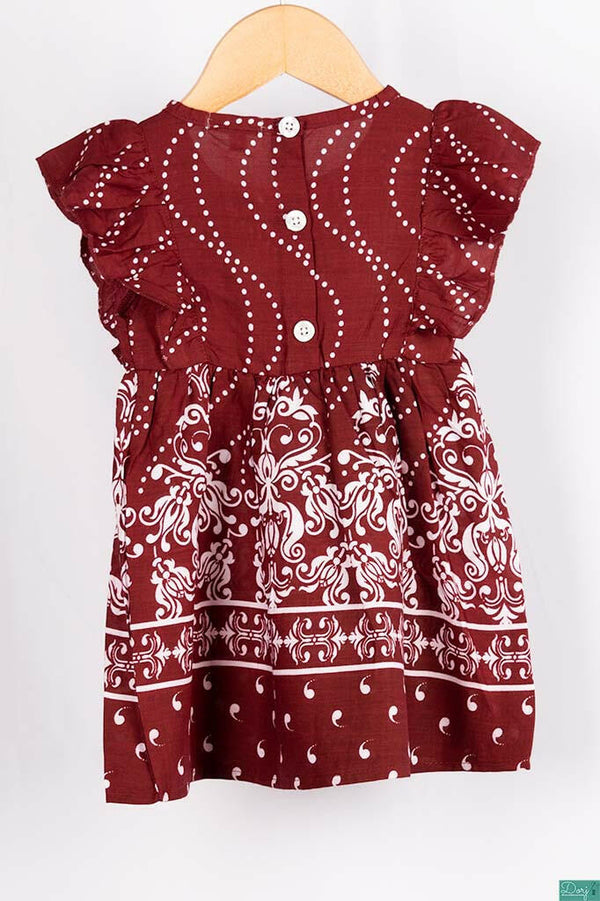 Available Colour: Black floral dress with pink and white flowers, Brick red floral dress, Navy dress with yellow and blue flowers, Maroon printed swirly pattern dress, Black and white dotted dress with red and pink flowers. Please refer to the measurements (in cm) table provided below: