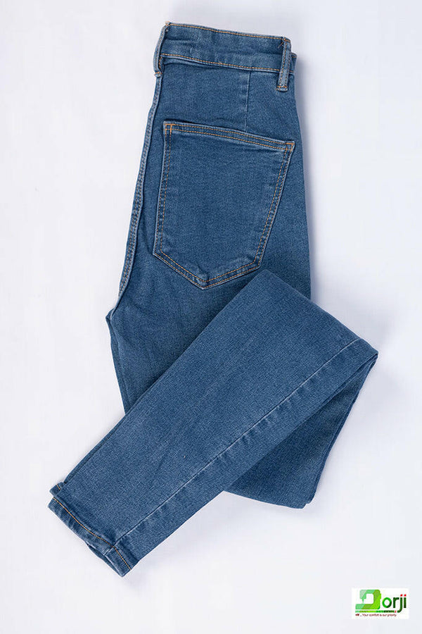 Ladies Slim fit fade Jeans in Blue and Grey. Comfortable & Stretchable mid-rise ladies jeans with 76% cotton 21 % polyester and 3% Elastane for everyday regular use. Suitable for all seasons. Available sizes: 4, 6, 8, 10, 12 and 14. Size Guide: