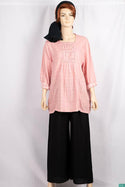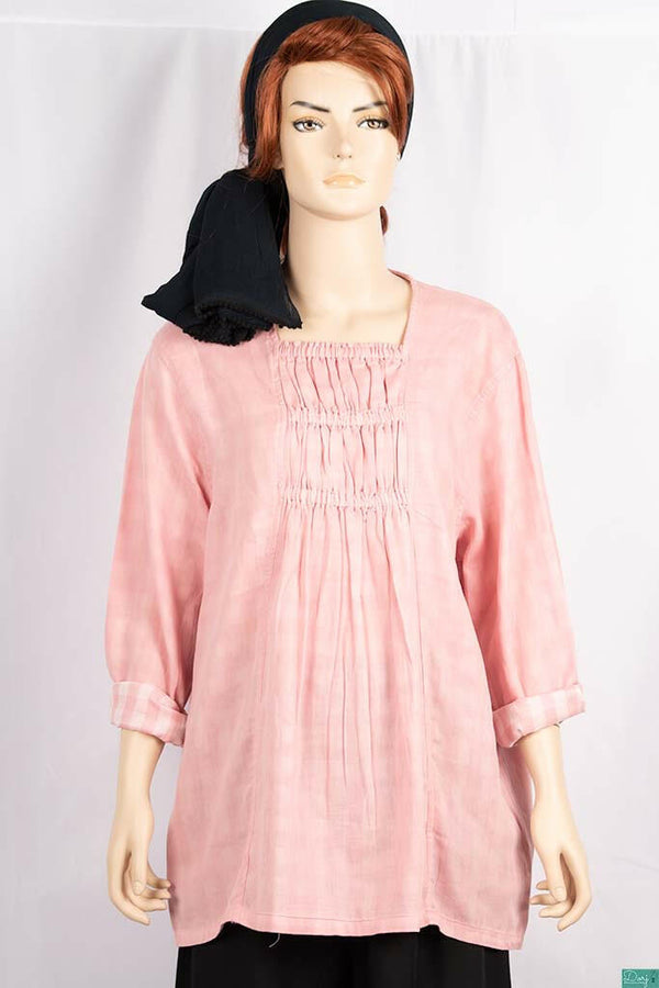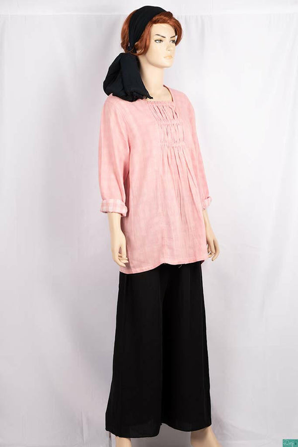 Ladies pleated square neck design full sleeve loose fit tops in Pastel Pink. A beautiful, soft , soothing & comfortable tops with 100% cotton. Suitable for all weather.