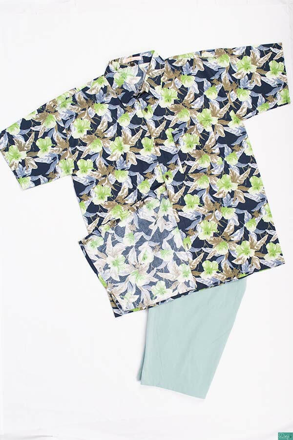 Men’s half sleeve slim fit greenish white floral prints summer Shirts. A very beautiful, soft, and comfortable shirt with 100% cotton. Suitable for Summer & Spring.