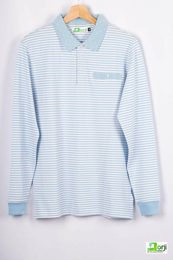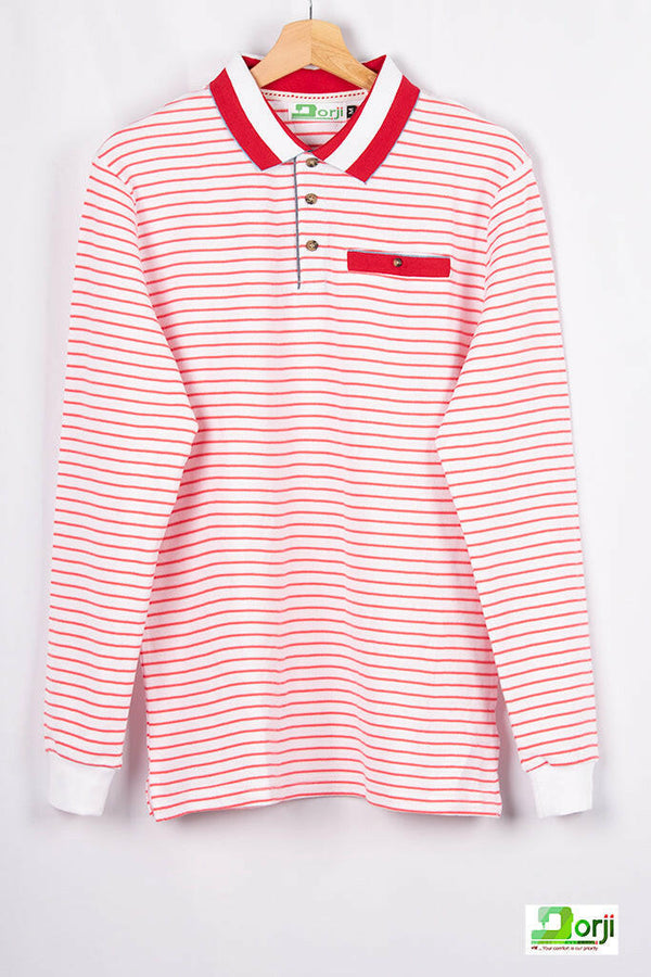 Men's full sleeve striped polo. 100% cotton regular fit comfortable polo. Suitable for all seasons.